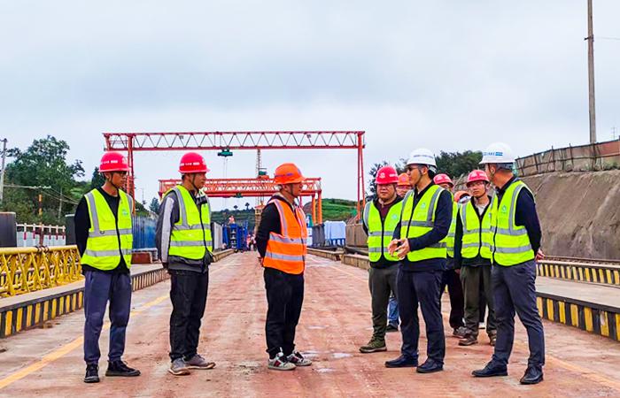 檢查期間付雋蒼重點(diǎn)查看了2號(hào)梁場現(xiàn)場施工情況,組織項(xiàng)目全體管理人員召開座談會(huì)。
