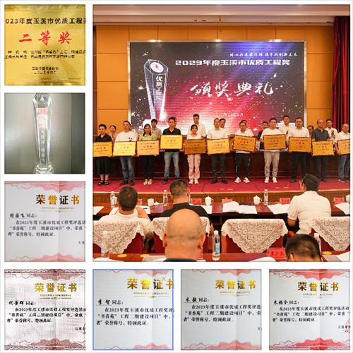• 近日,在2023年度玉溪市優(yōu)質(zhì)工程獎(jiǎng)?lì)C獎(jiǎng)典禮上,由公司五〇一直管項(xiàng)目部負(fù)責(zé)施工的江川區(qū)“書(shū)香苑”工程二期建設(shè)項(xiàng)目榮獲“2023年度玉溪市優(yōu)質(zhì)工程二等獎(jiǎng)”榮譽(yù),項(xiàng)目經(jīng)理謝國(guó)飛榮獲“優(yōu)秀項(xiàng)目經(jīng)理”稱號(hào),項(xiàng)目技術(shù)負(fù)責(zé)人代榮輝、項(xiàng)目管理人員木毅、李智以及朱福全等4名同志榮獲“突出貢獻(xiàn)者”稱號(hào)。