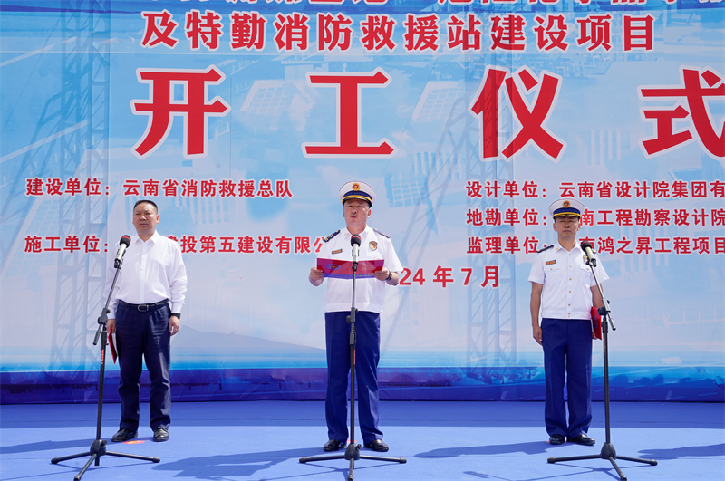 云南省消防救援總隊(duì)黨委副書記、總隊(duì)長(zhǎng)馬濤,黨委書記、政治委員王星,集團(tuán)公司黨委書記、董事長(zhǎng)陳祖軍,云南省消防救援總隊(duì)黨委委員、副總隊(duì)長(zhǎng)楊瑞新、鞏向海,云南省設(shè)計(jì)院集團(tuán)有限公司副總經(jīng)理普柬出席開工儀式。儀式由馬濤主持。