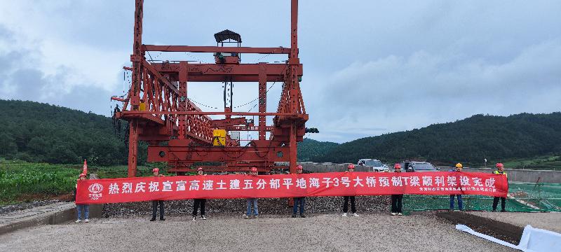 6月27日,由公司市政路橋一部負責施工的宣富高速公路項目土建五分部平地海子3號大橋T梁順利架設完成。