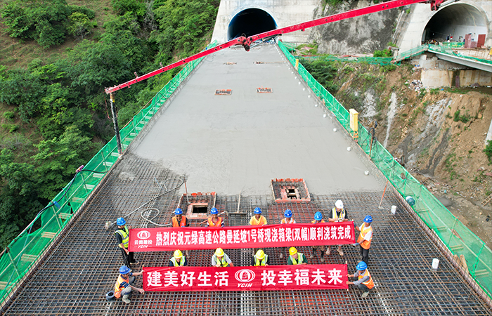 8月27日,由公司市政路橋四部負(fù)責(zé)施工的元綠高速公路土建二分部曼延坡1號(hào)中橋現(xiàn)澆箱梁頂板混凝土澆筑任務(wù)順利完成,轉(zhuǎn)入梁體養(yǎng)護(hù)及橋面鋪裝施工階段。