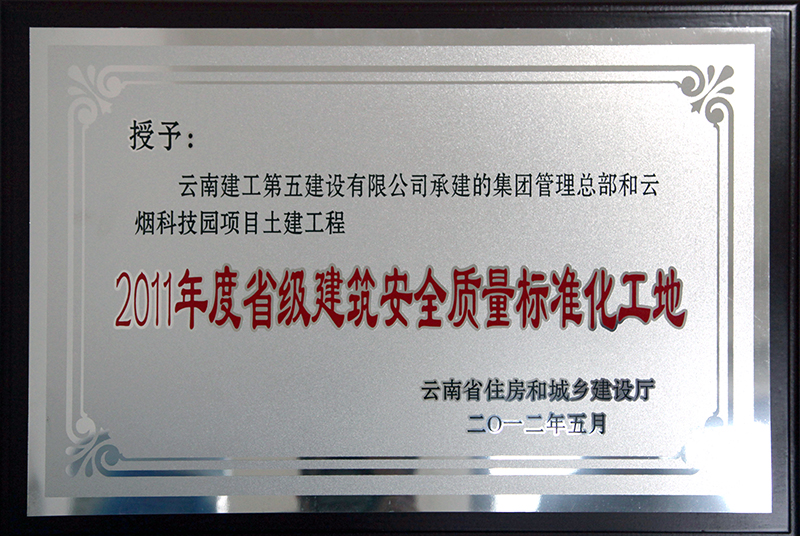 五〇一直管部承建施工的云煙科技園項目土建工程獲“2011年度省級建筑安全質(zhì)量標準化工地”稱號