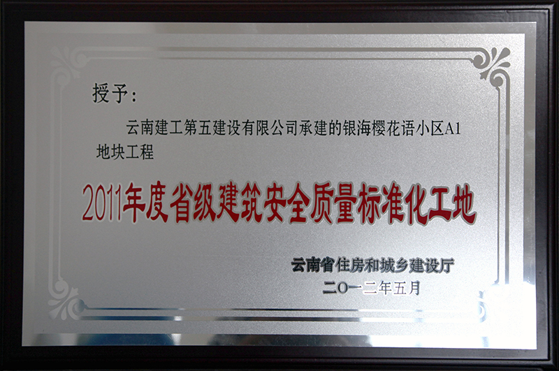 第一直管部承建施工的銀海櫻花語小區(qū)A1地塊工程獲“2011年度省級建筑安全質(zhì)量標準化工地”稱號